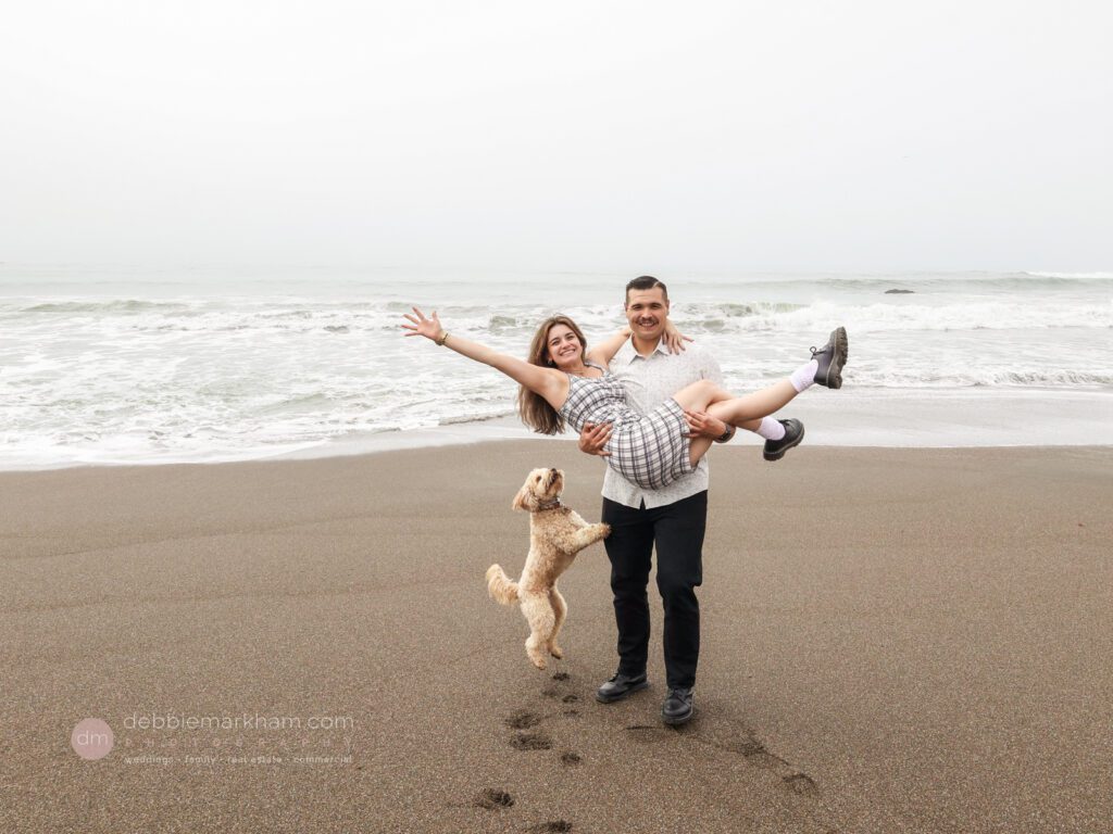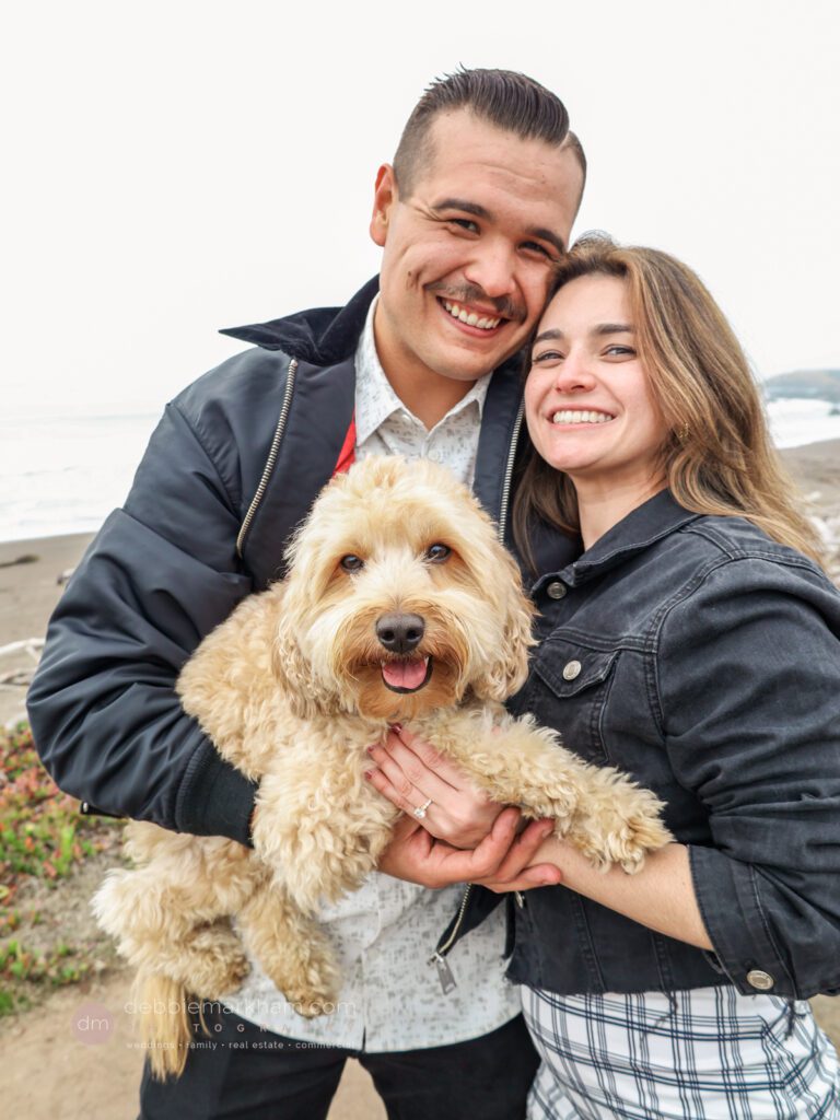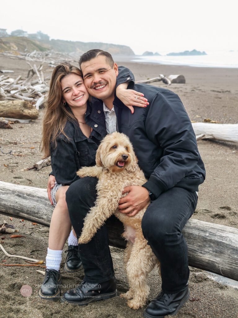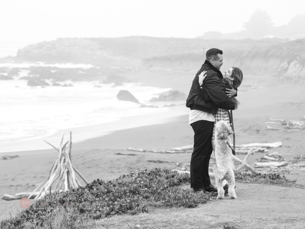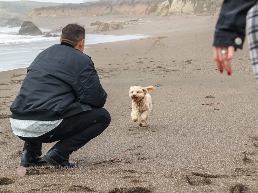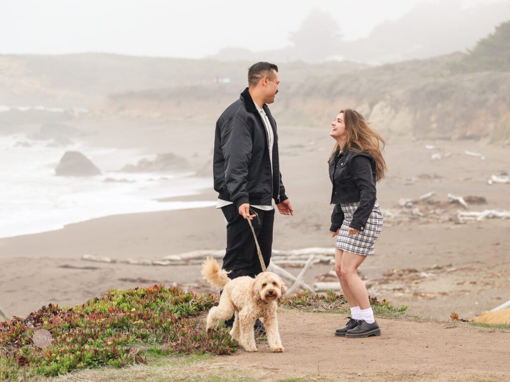 As they walked along the cliffside trail overlooking Moonstone Beach, Austin paused, knelt down, and held out the ring. Scrappy wagged and circled them, as Lauren literally jumped for joy!