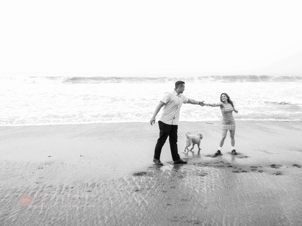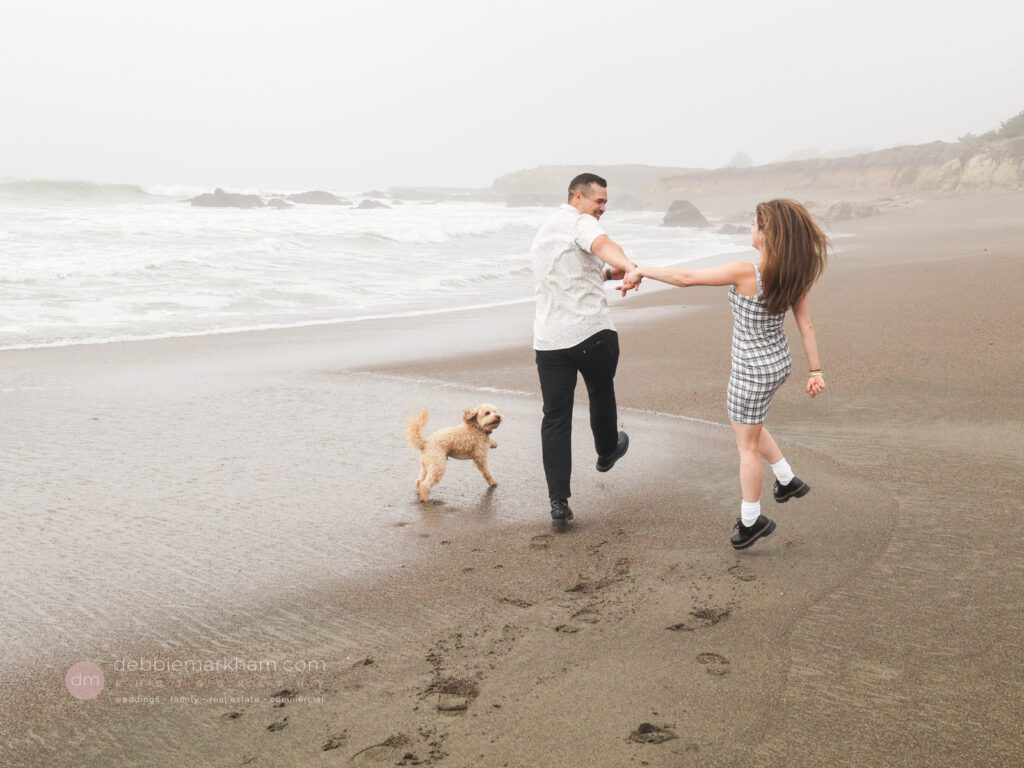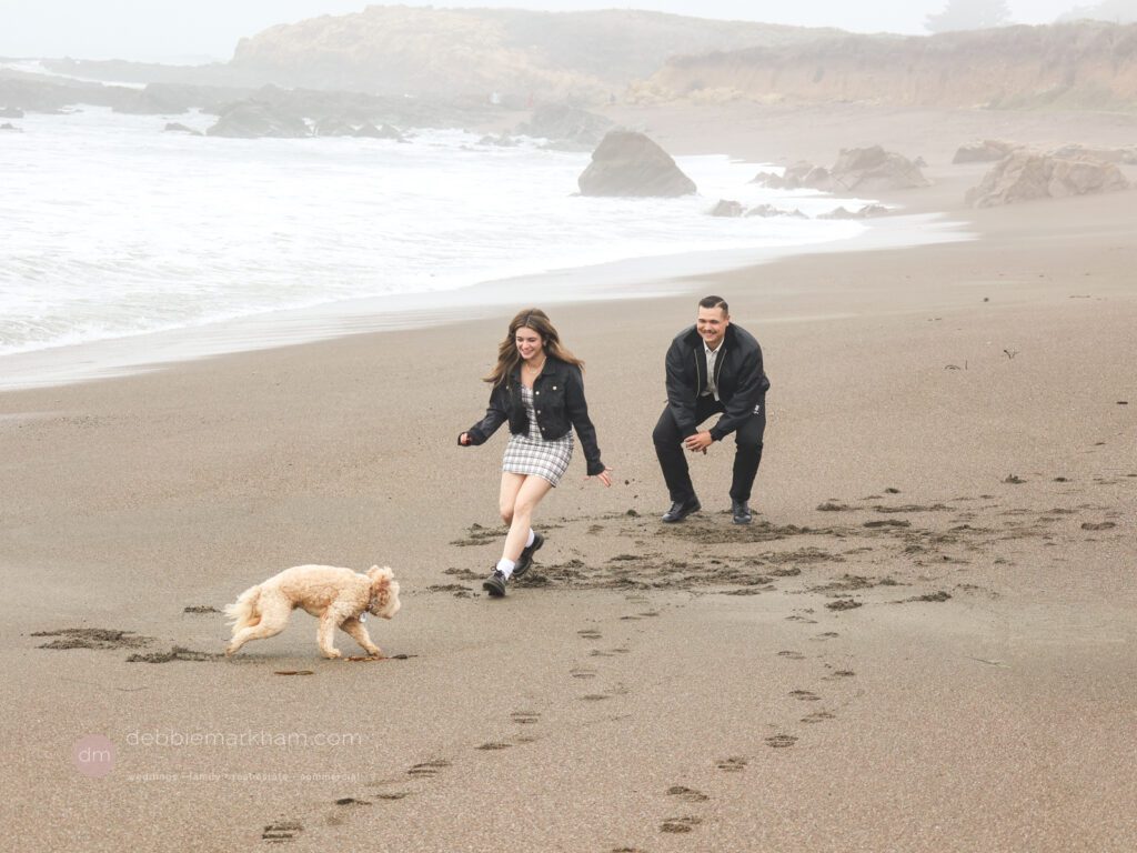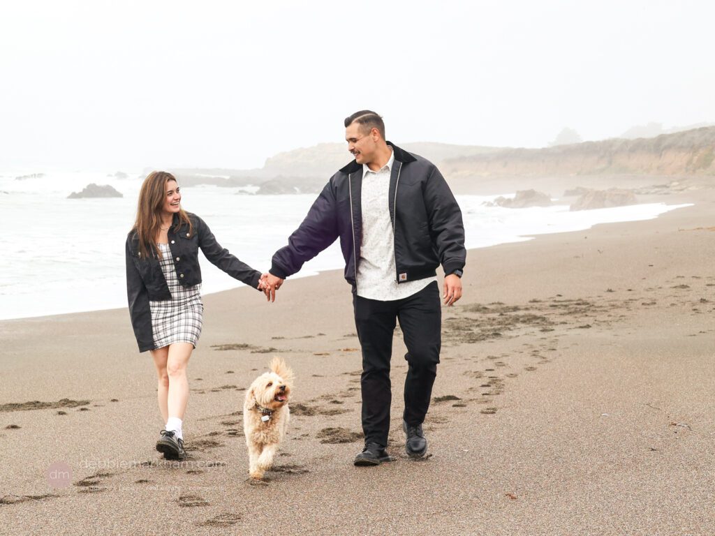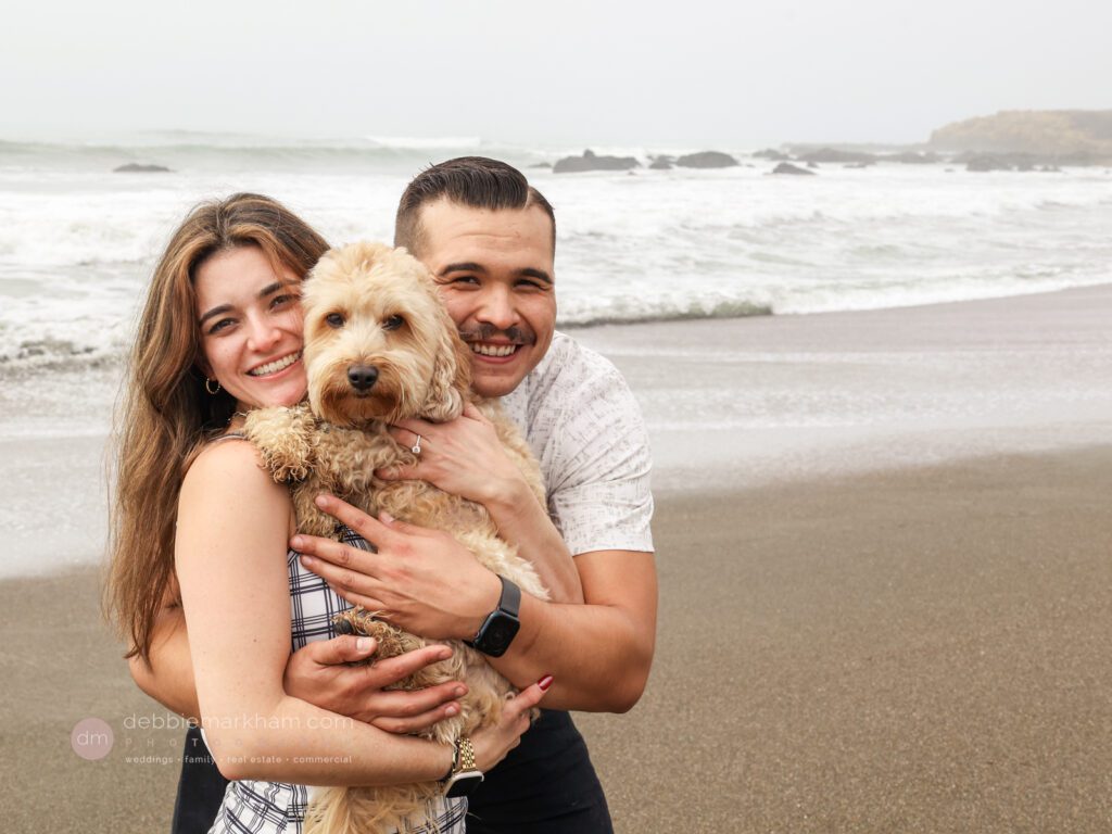 As they walked along the cliffside trail overlooking Moonstone Beach, Austin paused, knelt down, and held out the ring. Scrappy wagged and circled them, as Lauren literally jumped for joy!